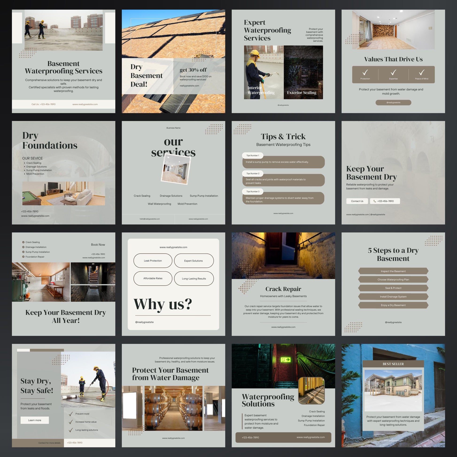 Basement Waterproofing Canva Templates | Editable Instagram Posts for Waterproofing Services