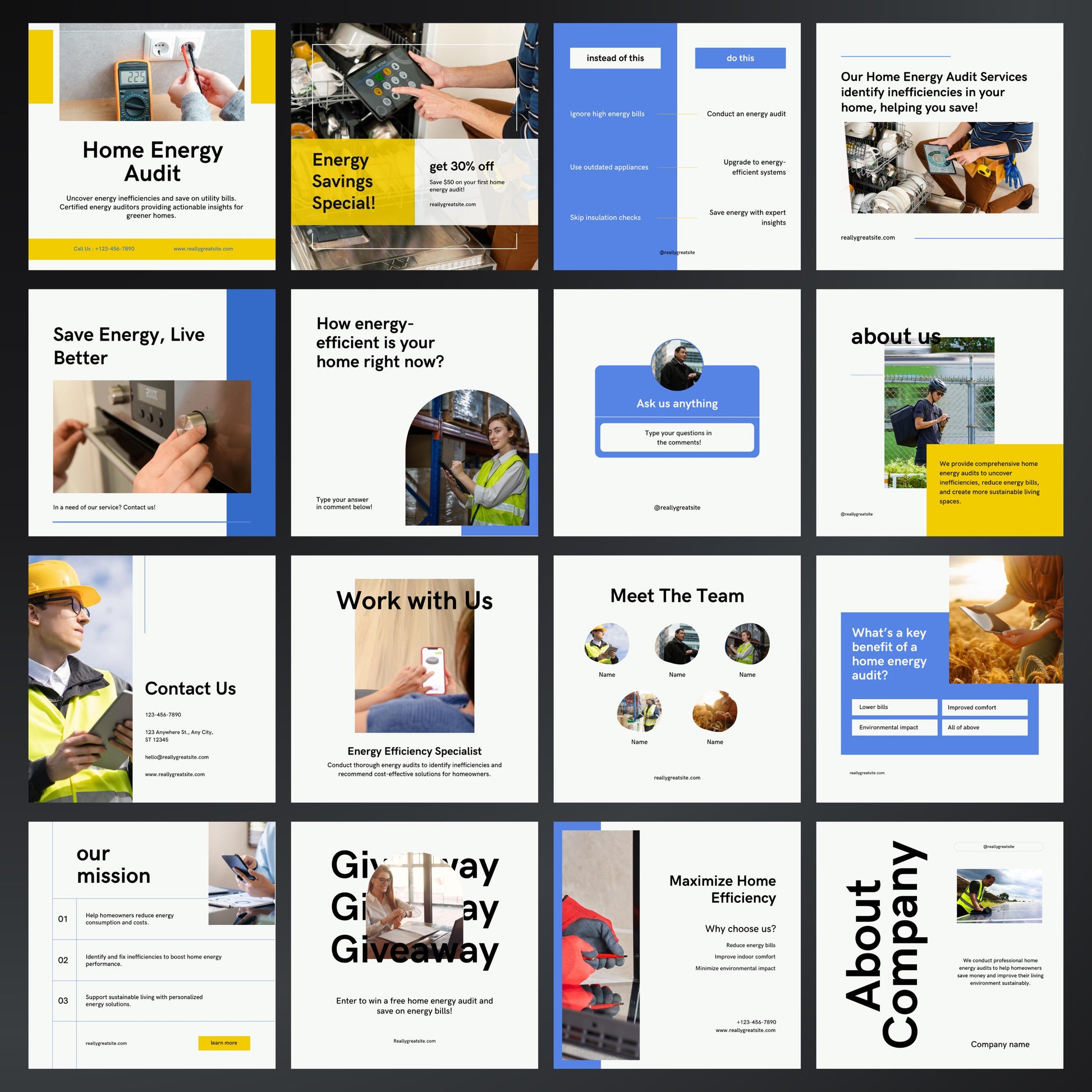 Home Energy Audit Canva Templates | Editable Instagram Posts for Energy Consultants & Auditors