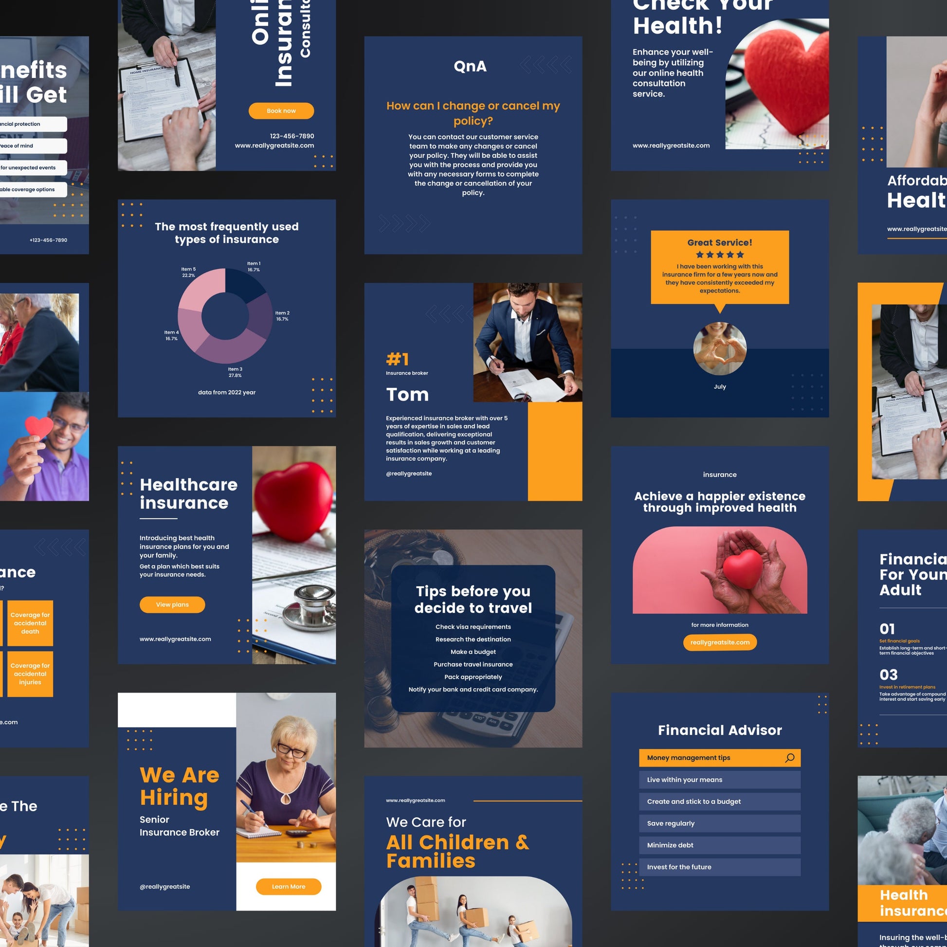Build trust and grow your client base with these 80 Insurance Canva Templates, designed specifically for insurance agents, brokers, and financial advisors who want to look professional on social media. 💼✨