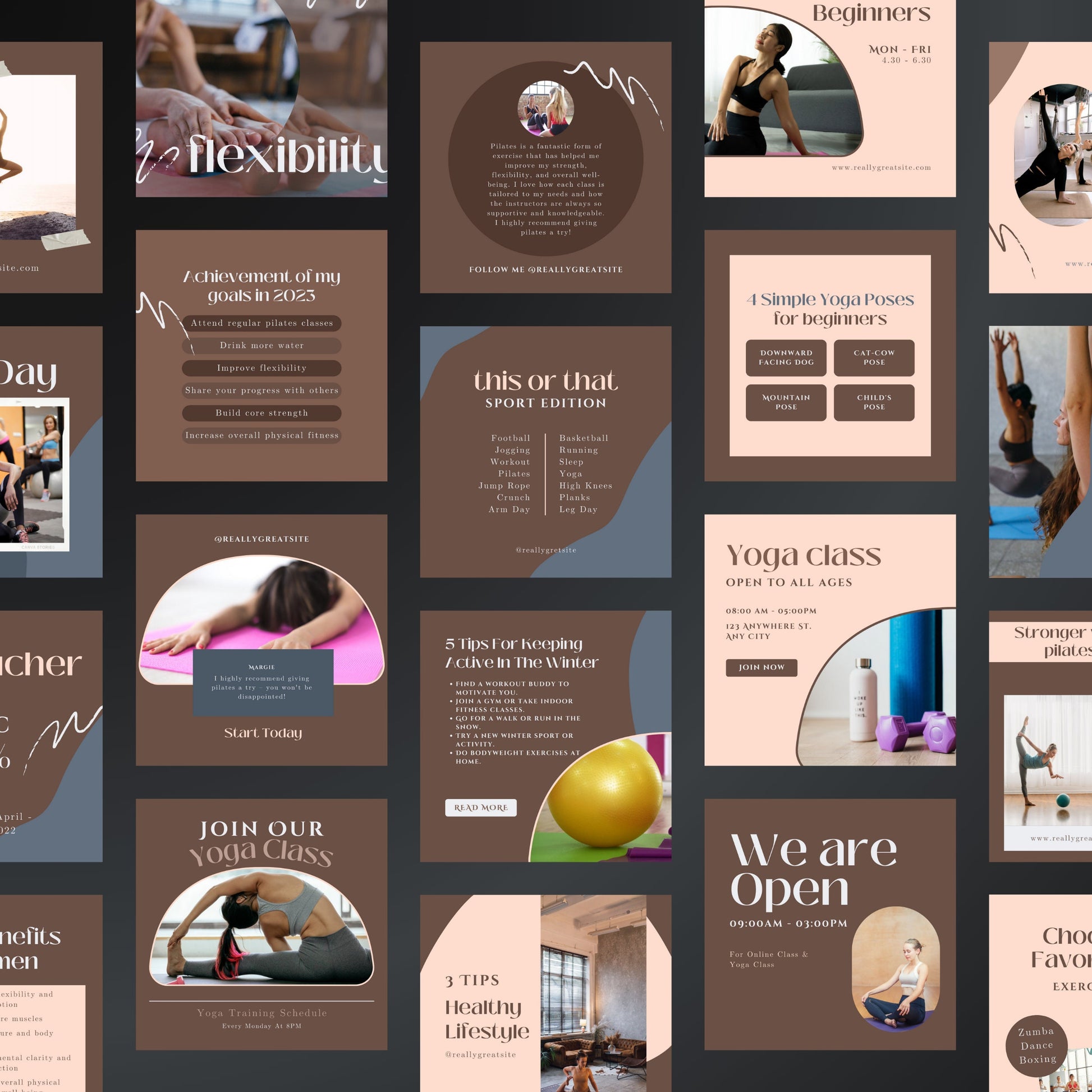 Pilates & Yoga Canva Templates | Editable Instagram Posts for Yoga Studios and Fitness Coaches